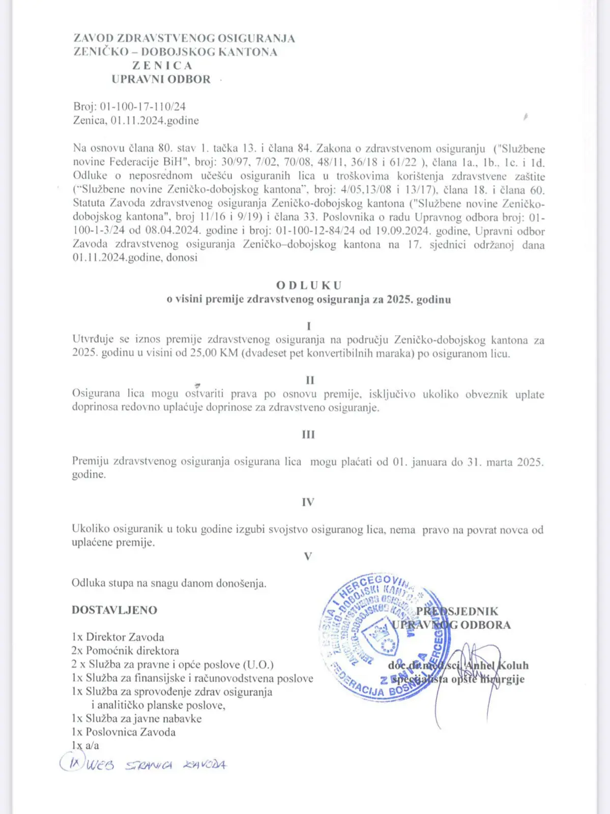 Na 33. sjednici Skupštine Zeničko-dobojskog kantona (ZDK) 27. novembra 2024. godine usvojen je Finansijski plan Zavoda zdravstvenog osiguranja ZDK za 2025. godinu, vrijedan oko 295,3 miliona KM. U okviru ovog plana, Upravni odbor ZZO ZDK odlučio je povećati iznos premije zdravstvenog osiguranja, popularne “markice,” sa dosadašnjih 20 na 25 KM.
