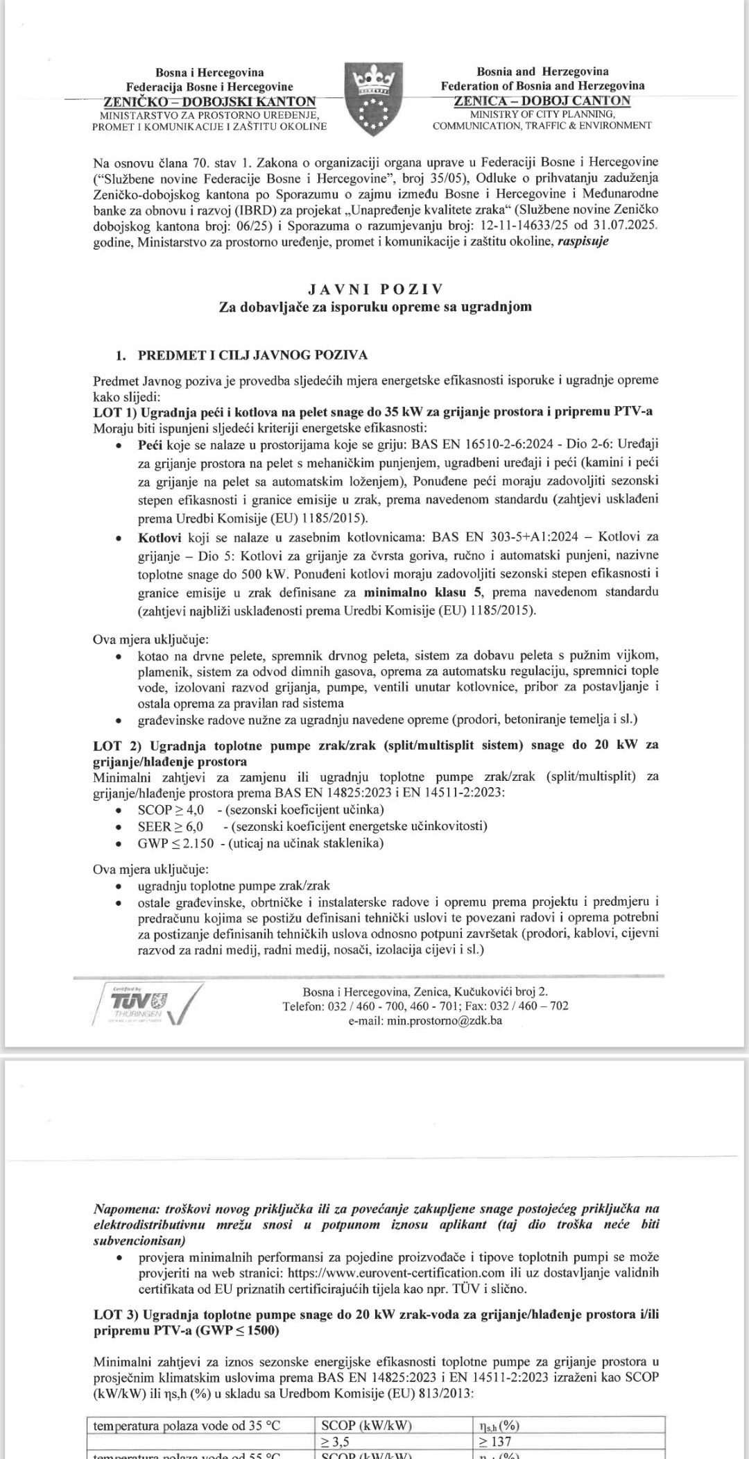 Prema važećem javnom pozivu Ministarstva za prostorno uređenje, promet i komunikacije i zaštitu okoline ZDK, sredstva su predviđena za sufinansiranje konverzije grijanja domaćinstava sa čvrstih goriva na pelet i toplotne pumpe, ali ne i na plinske kondenzacione kotlove.