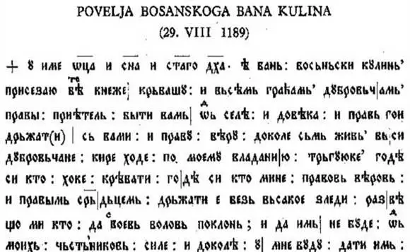 Povelja bosanskog bana Kulina je napisana 29. augusta 1189. godine na starobosanskom narodnom jeziku i bosanskim pismom bosančicom. Ovaj dokument je ne samo...