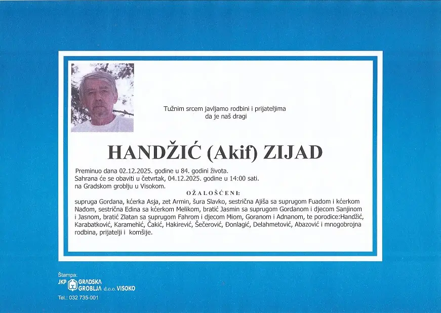 HANDŽIĆ (Akif) ZIJAD 04.12.2025. u 14:00 sati