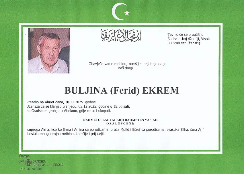 BULJINA ( Ferid) EKREM 03.12.2025. u 15:00 sati