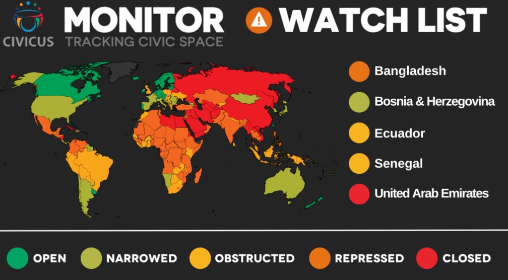 Zbog ugrožavanja ljudskih prava Globalna alijansa civilnog društva CIVICUS dodala je Bosnu i Hercegovinu na svoju listu za praćenje zemalja u kojima je...