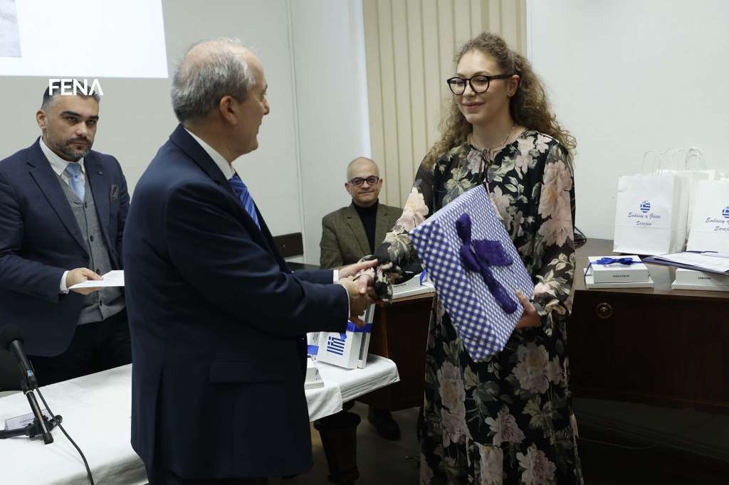 Ambasador Grčke u BiH Dimitrios Papandreou je četvrtak u prostorijama SPKD “Prosvjeta” u Sarajevu uručio nagrade učesnicima takmičenja pod nazivom “Grčka i umjetnost”...