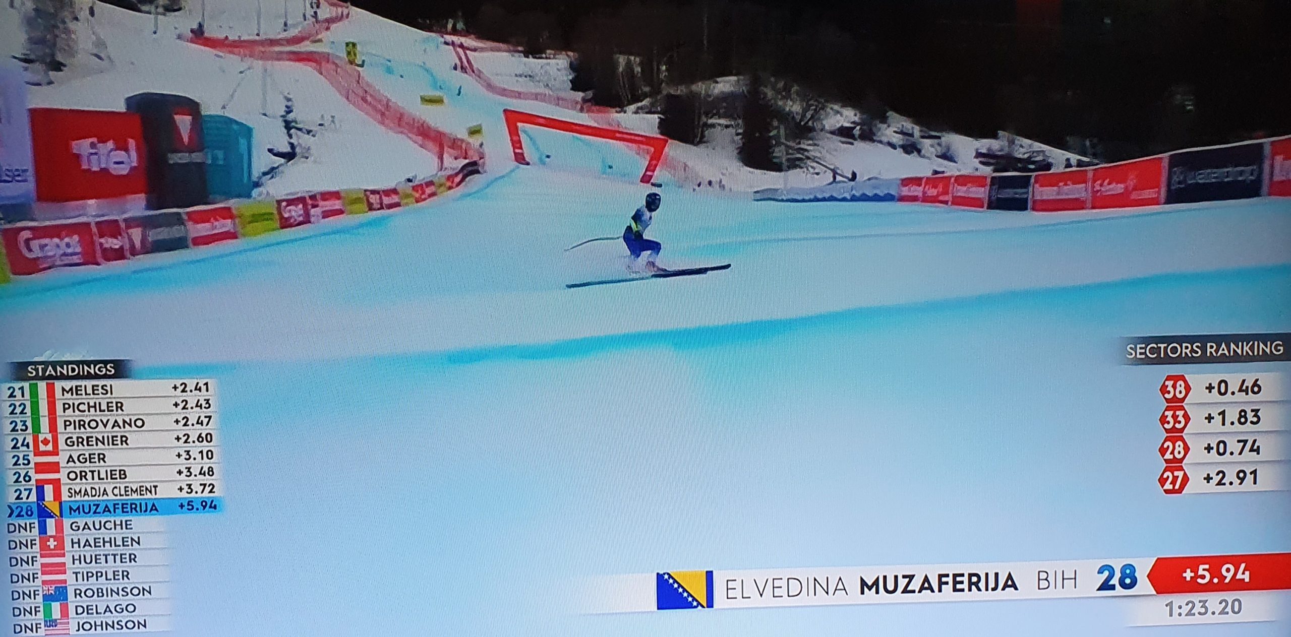 Naša najbolja skijašica Elvedina Muzaferija osvojila je tri boda u Svjetskom kupu u alpskom skijanju završivsi na 28. mjestu super G utrku u...