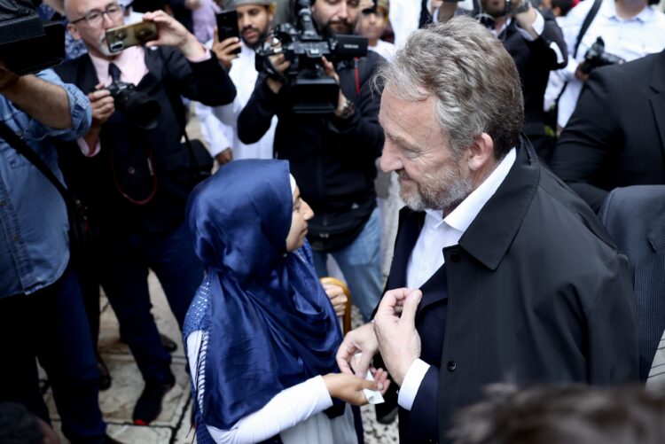 Nakon klanjanog bajram namaza, Izetbegović je čestitao Bajram prisutnim oko sebe, a potom mališane obradovao bajram-bankom.