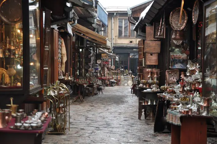 Baščaršija, nekada živo središte zanatstva, danas svjedoči o teškoćama kovača, obrtnika i drugih zanatlija.