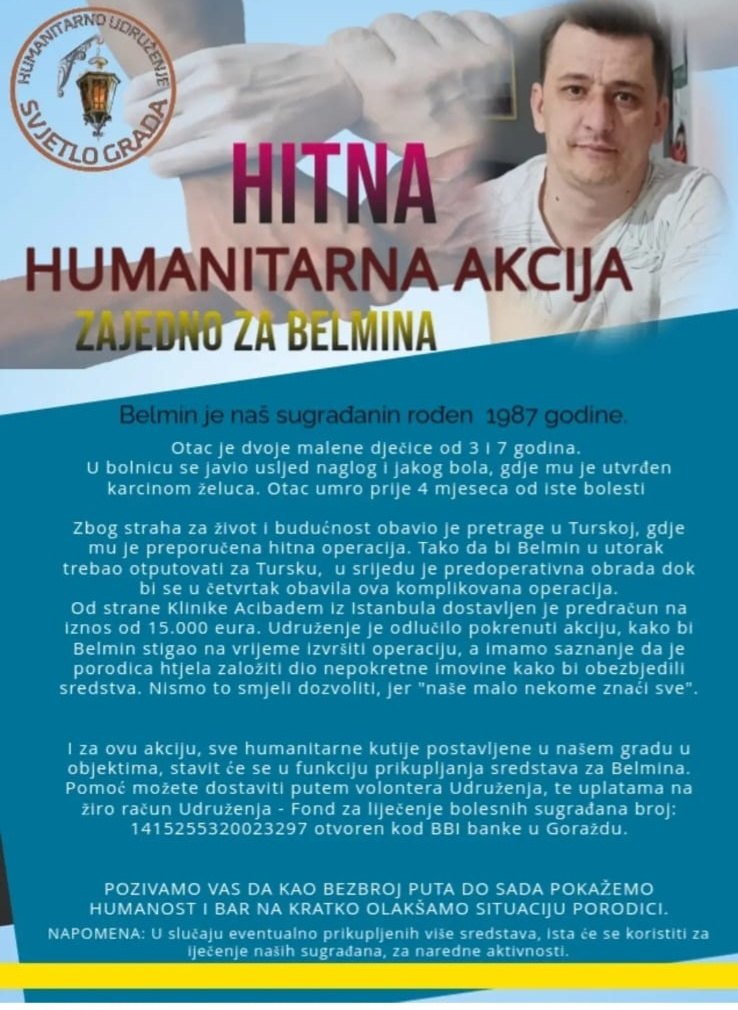 Humanitarno udruženje “Svjetlo grada” iz Goražda pokrenulo je hitnu humanitarnu akciju za sugrađanina Belmina.