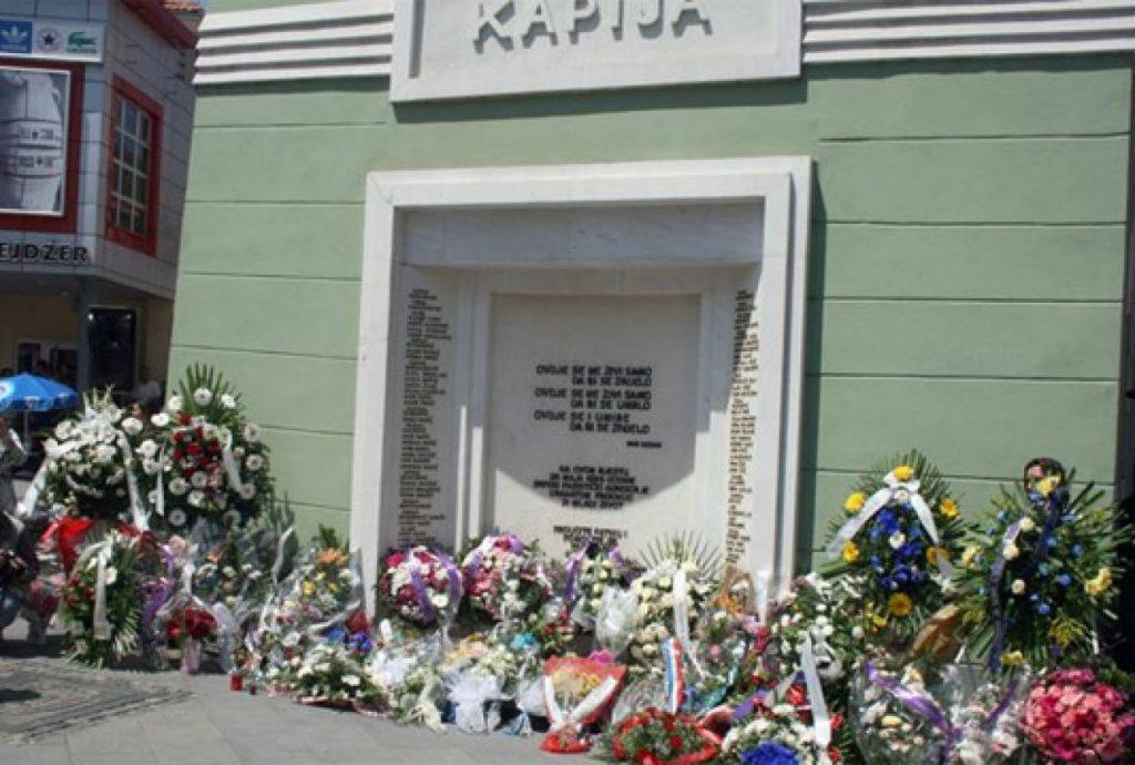 Nakon kraćeg prijema kod Imamovića otišli smo do Kapije. S nama su Nada Mladina, i advokat Vehid Šehić (Tuzlak koji je prvi u ratu došao u Beograd tokom rata i kasnije predvodio multietničku(!) delegaciju Sarajlija i Tuzlaka). Poklonili smo se. Uz vijenac koji smo doneli iz Beograda ispisao sam (vidi fotografiju) “Klanjamo se žrtvama, 25. maja ’95. Jovo Kapičić, narodni heroj NOB, Nenad Prokić, član Predsedništva LDP, Nebojša Ranđelović, član Predsedništva LDP i Dragan Banjac, novinar – Beograd.