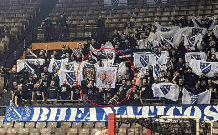 Tom prilikom su imali poseban performans, gdje su vulgarnom zastavom izvrijeđali predsjednika Rukometnog saveza BiH Marinka Umičevića.