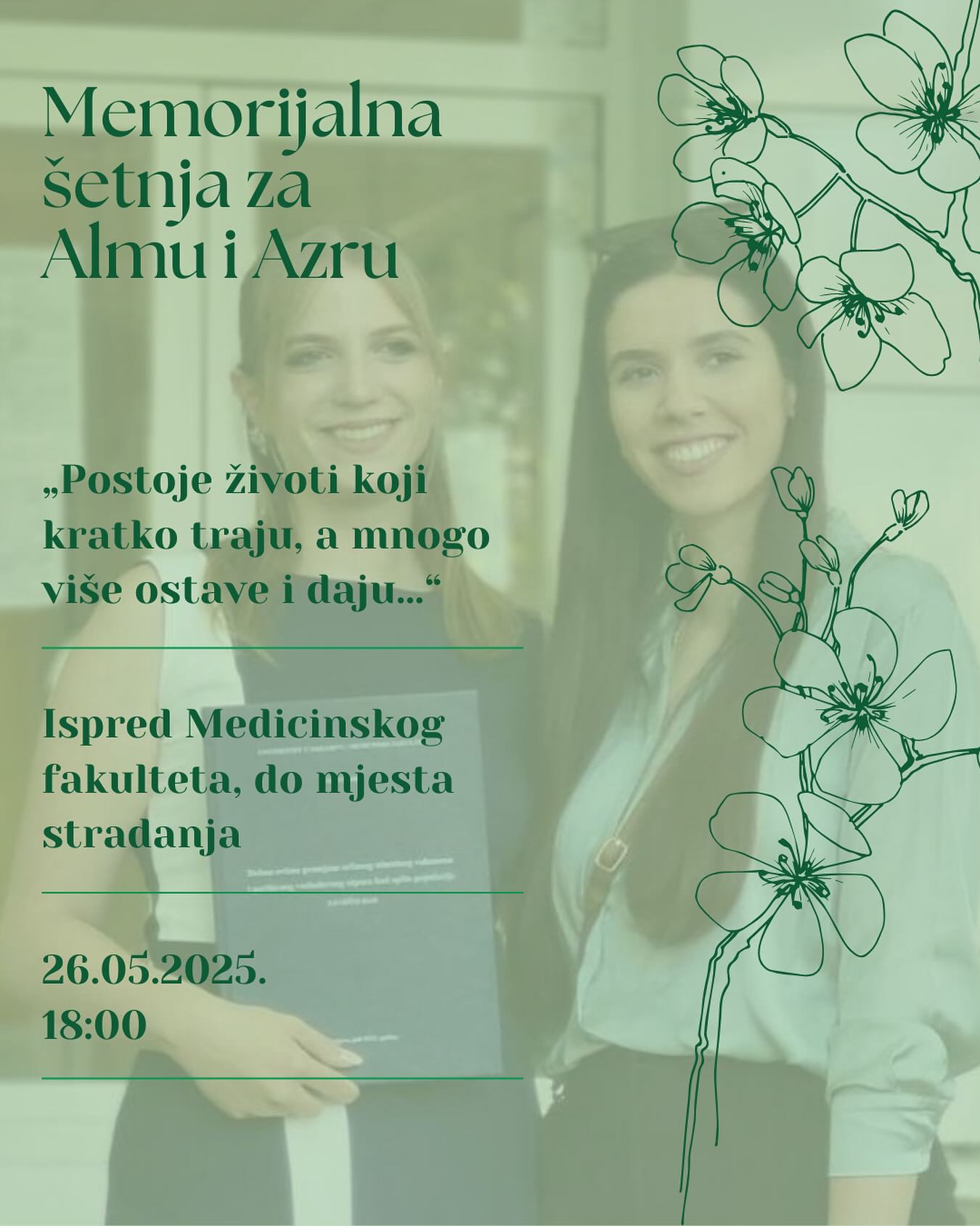 U znak sjećanja na tragično stradale mlade doktorice Azru Spahić i Almu Suljić, studenti Medicinskog fakulteta u Sarajevu organizovat će memorijalnu šetnju u...
