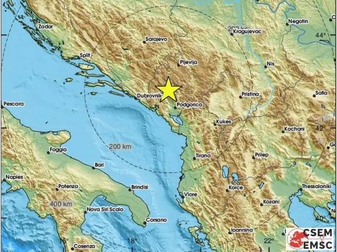 Zemljotres jačine 4,4 stepena po Richteru potresao je sinoć Bosnu i Hercegovinu i Crnu Goru. Prema podacima EMSC-a, epicentar ptoresa je 26 kilometara...