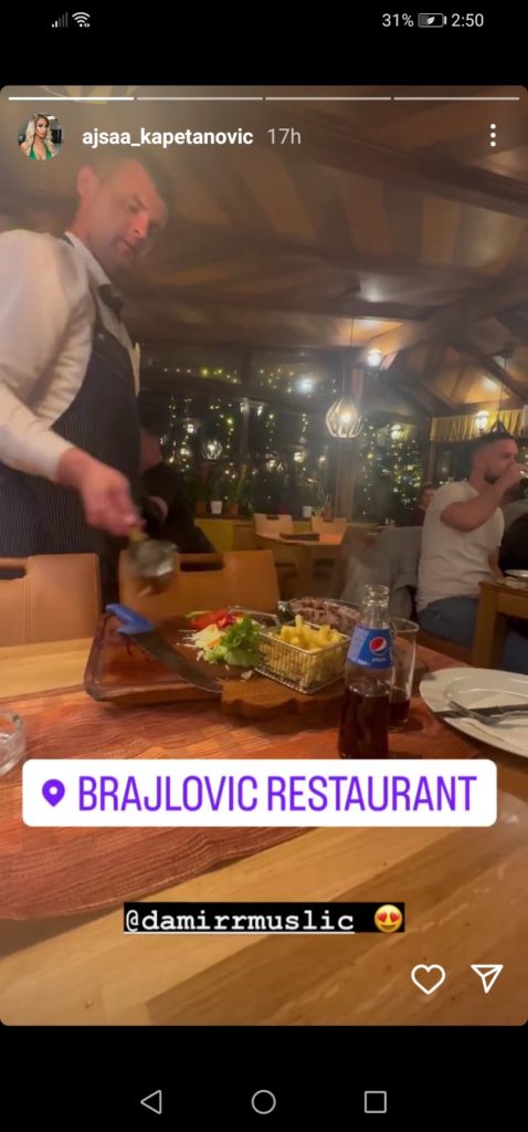Pjevačica je odlučila da tokom boravka u Sarajevu ne vodi računa o kalorijama. Sa Damirom je otišla u restoran kod Brajlovića, a na meniju su bili njihovi slasni specijaliteti.