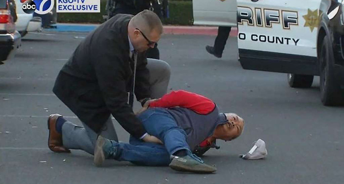 Osumnjičenik za pucnjavu je izašao, srušen je na zemlju i pretražen. Ubrzo je na mjesto događaja stiglo još naoružanih policajaca.