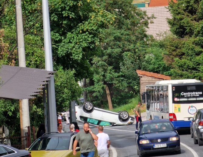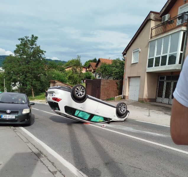 Automobil je iz za sada nepoznatih razloga završio na krovu.