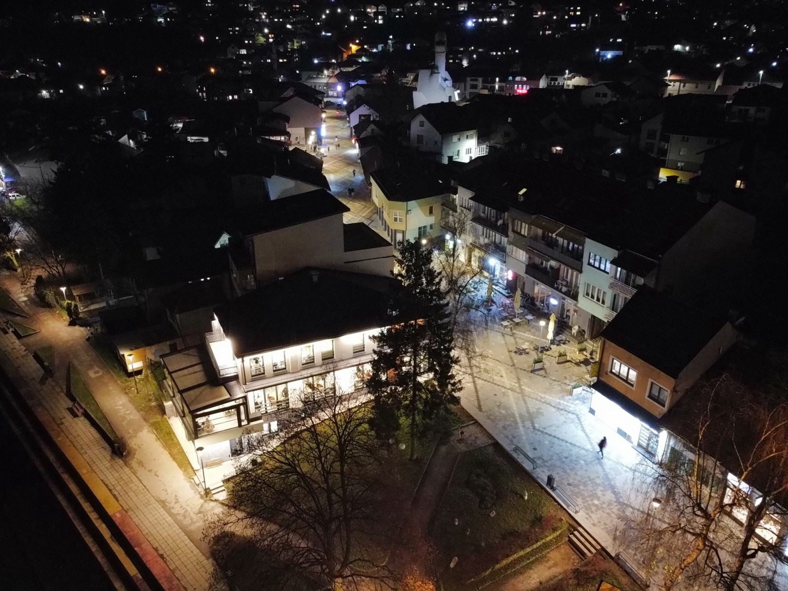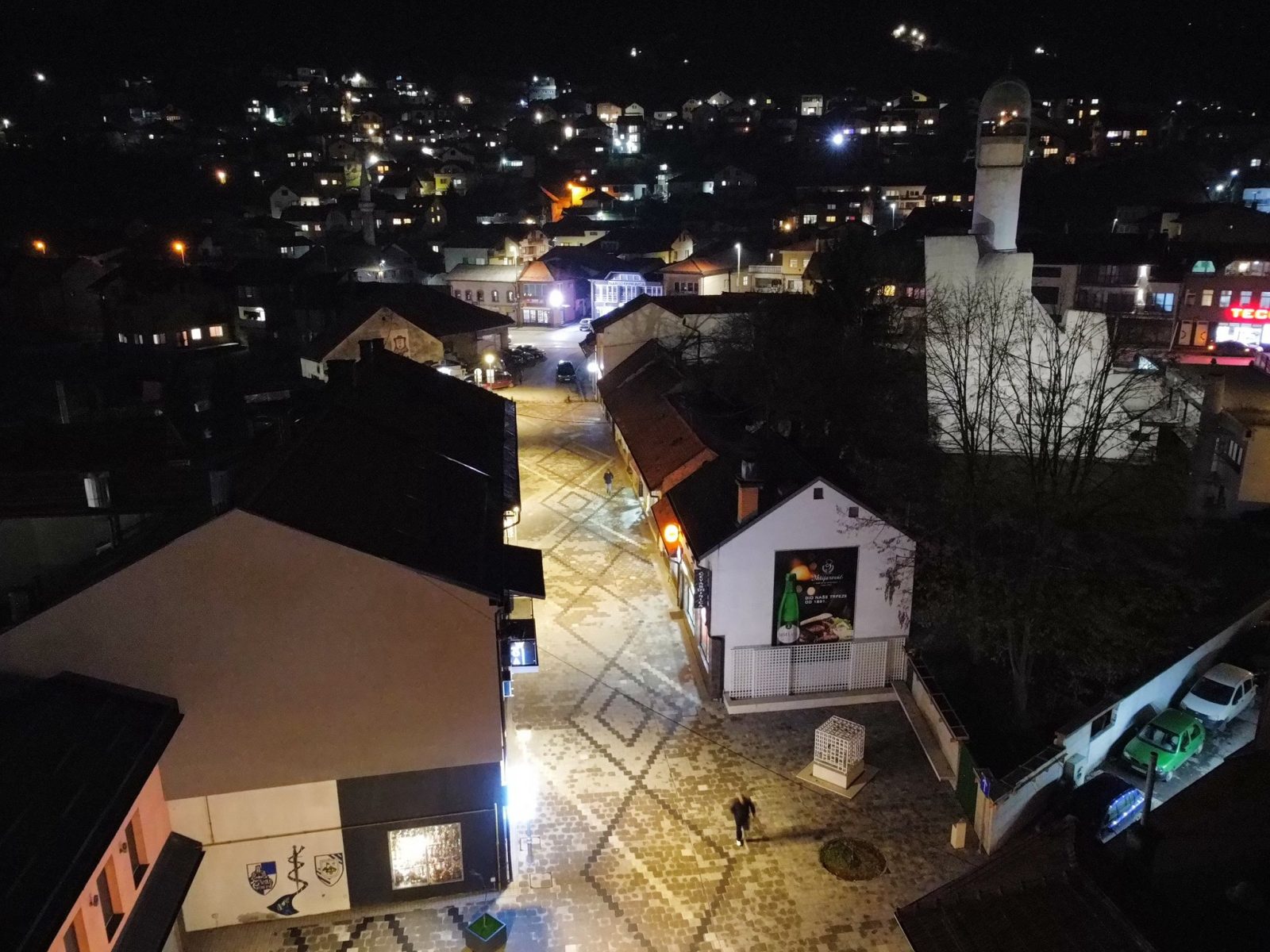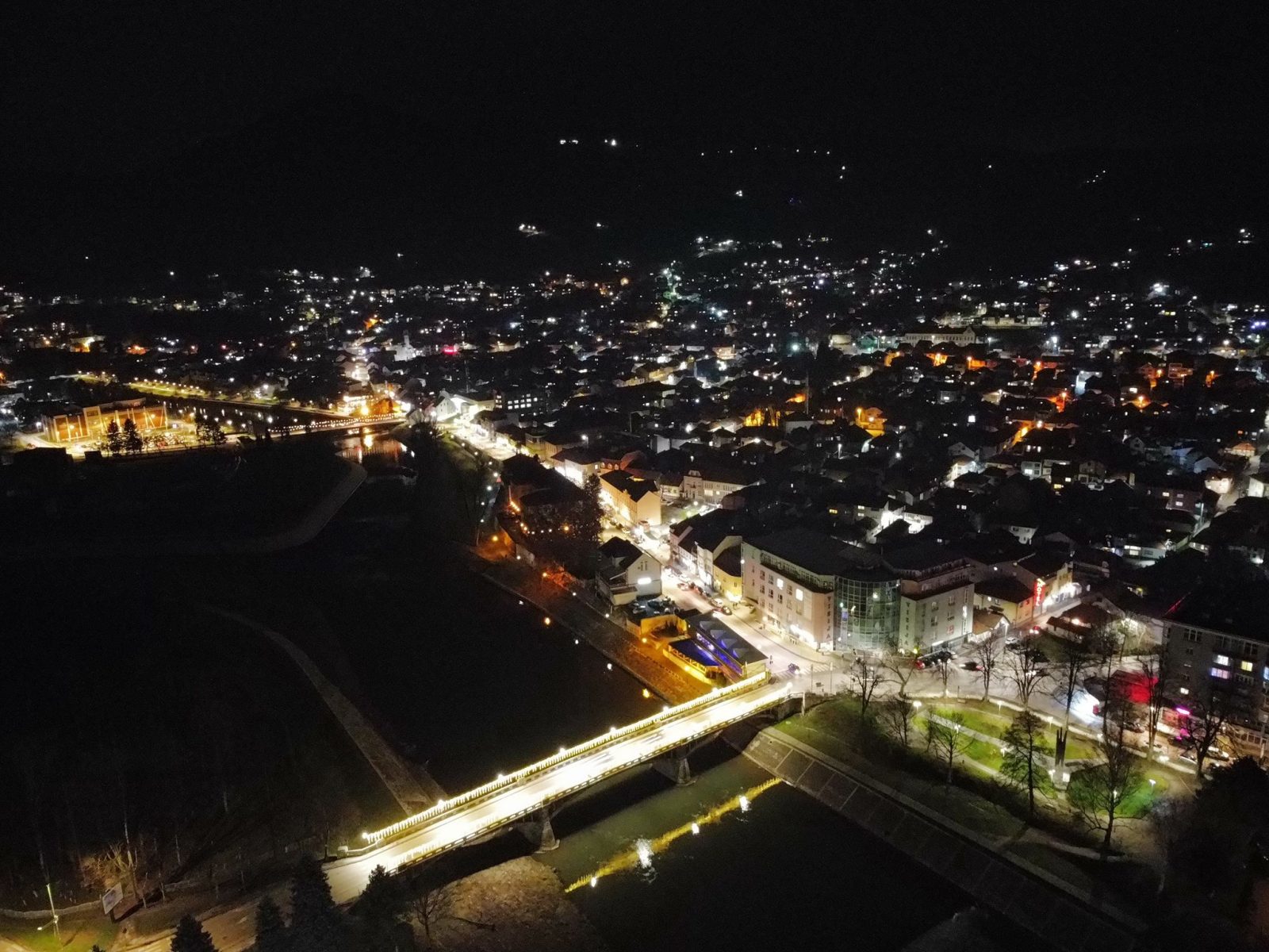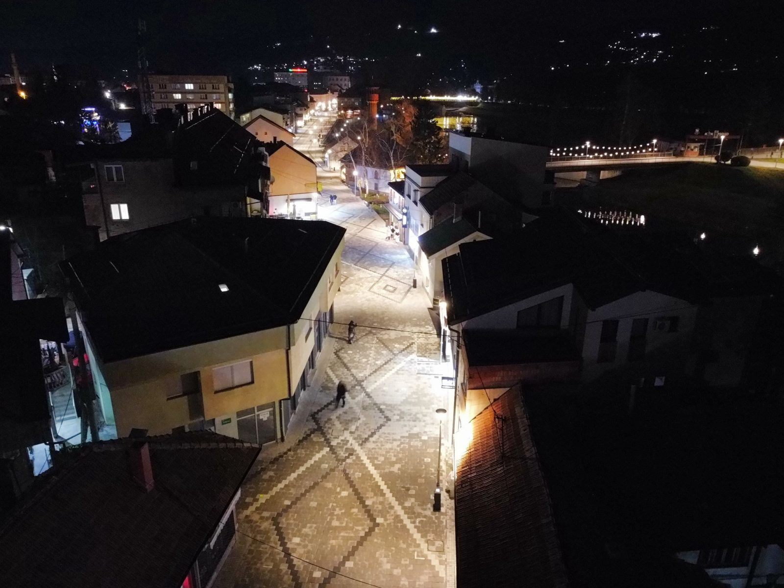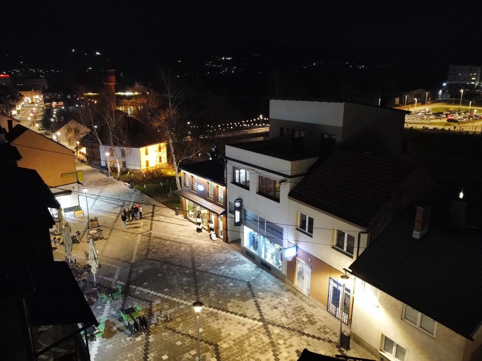 Centar Visokog u noći 25. decembra 2025. godine zabilježen je kroz objektiv drona, donoseći jedinstvene kadrove praznične atmosfere grada. Osvijetljene ulice, trg i gradske tačke pružaju poseban noćni ugođaj.