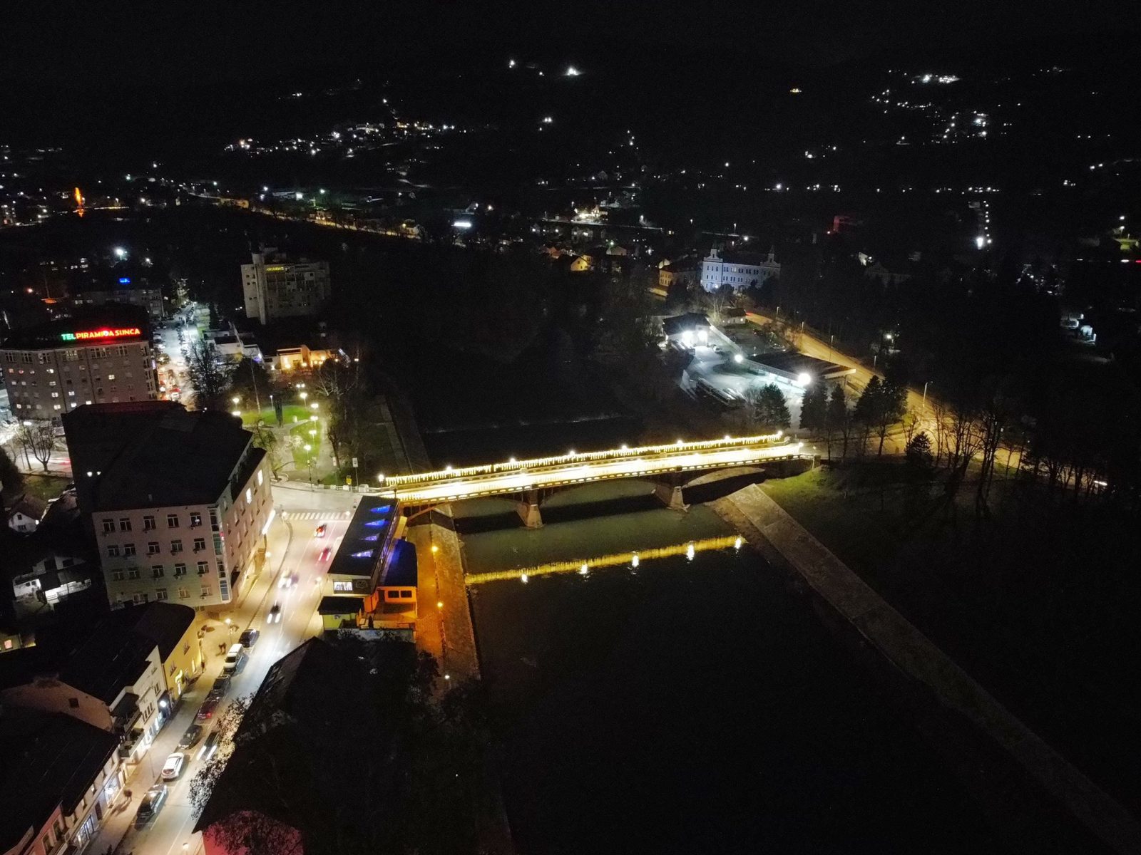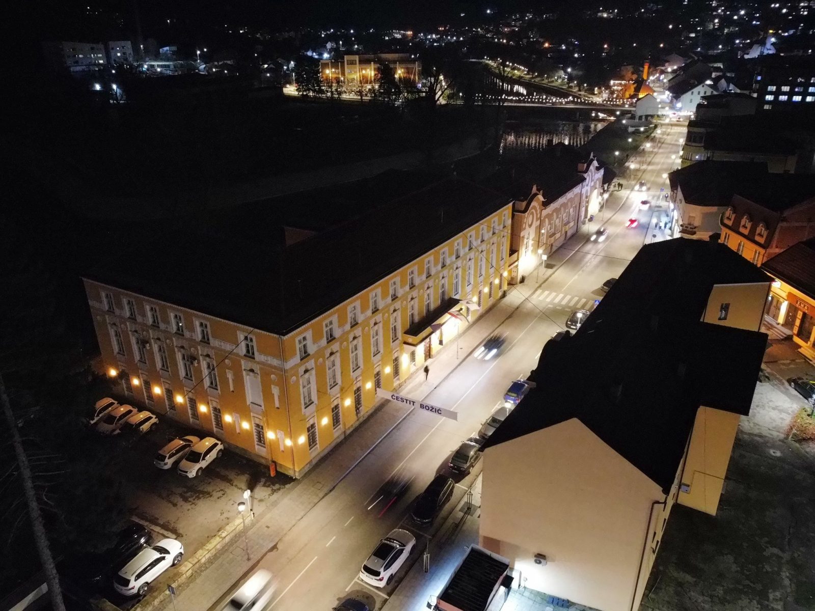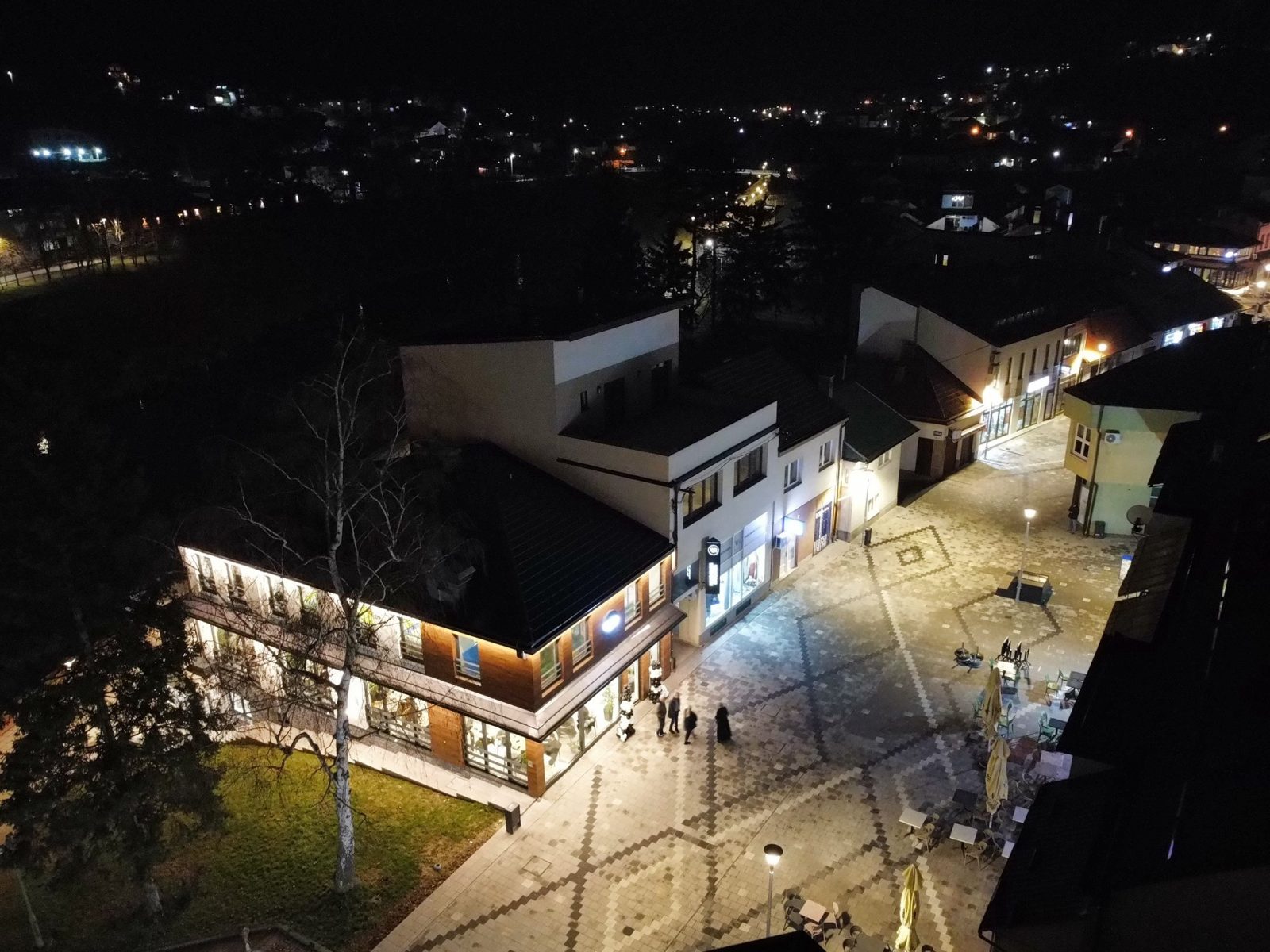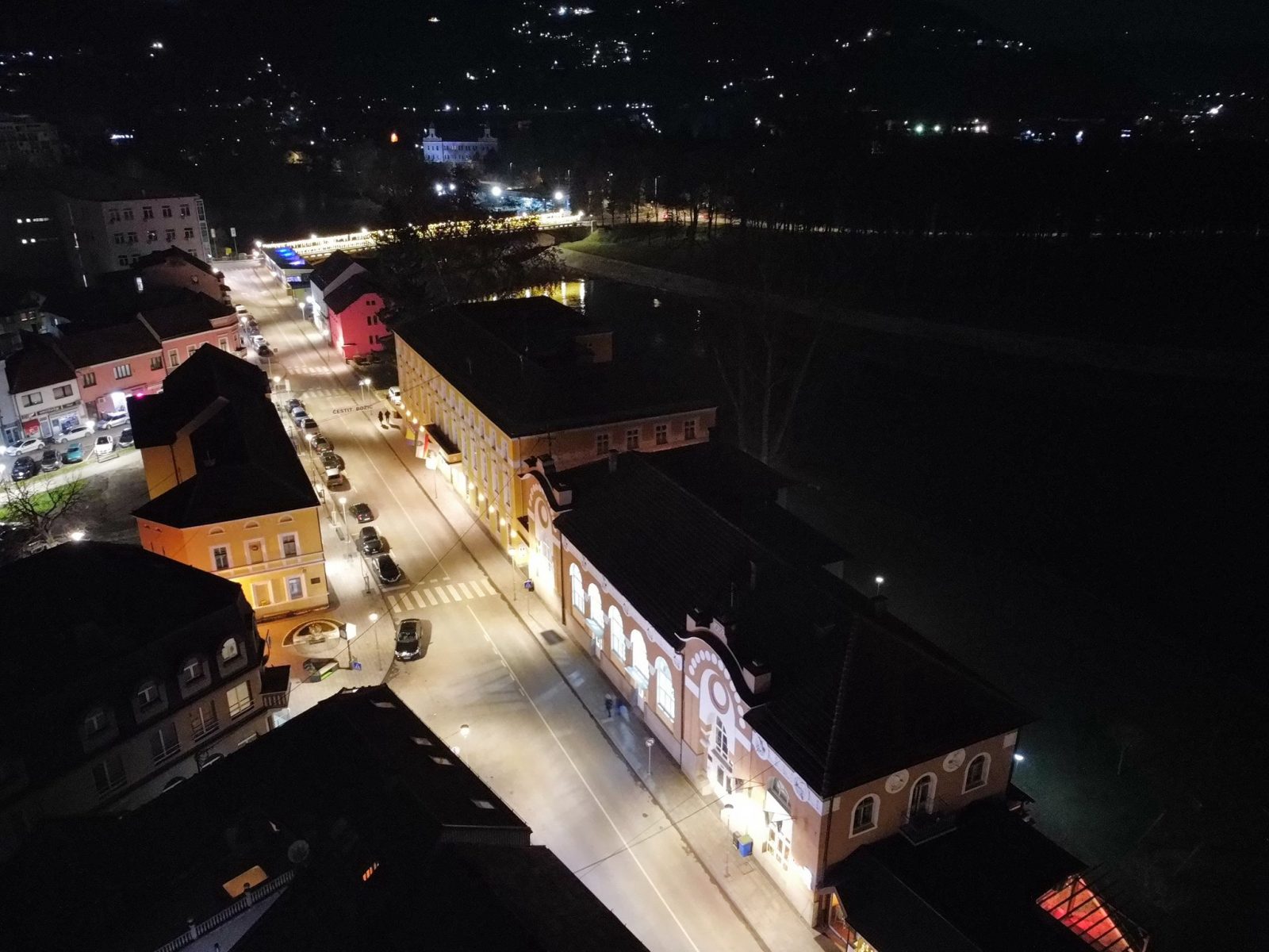 Centar Visokog u noći 25. decembra 2025. godine zabilježen je kroz objektiv drona, donoseći jedinstvene kadrove praznične atmosfere grada. Osvijetljene ulice, trg i gradske tačke pružaju poseban noćni ugođaj.
