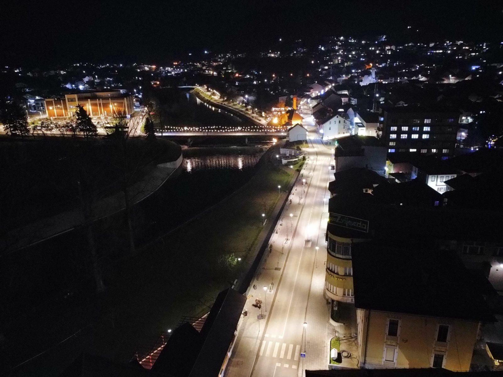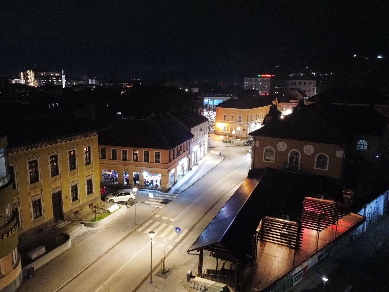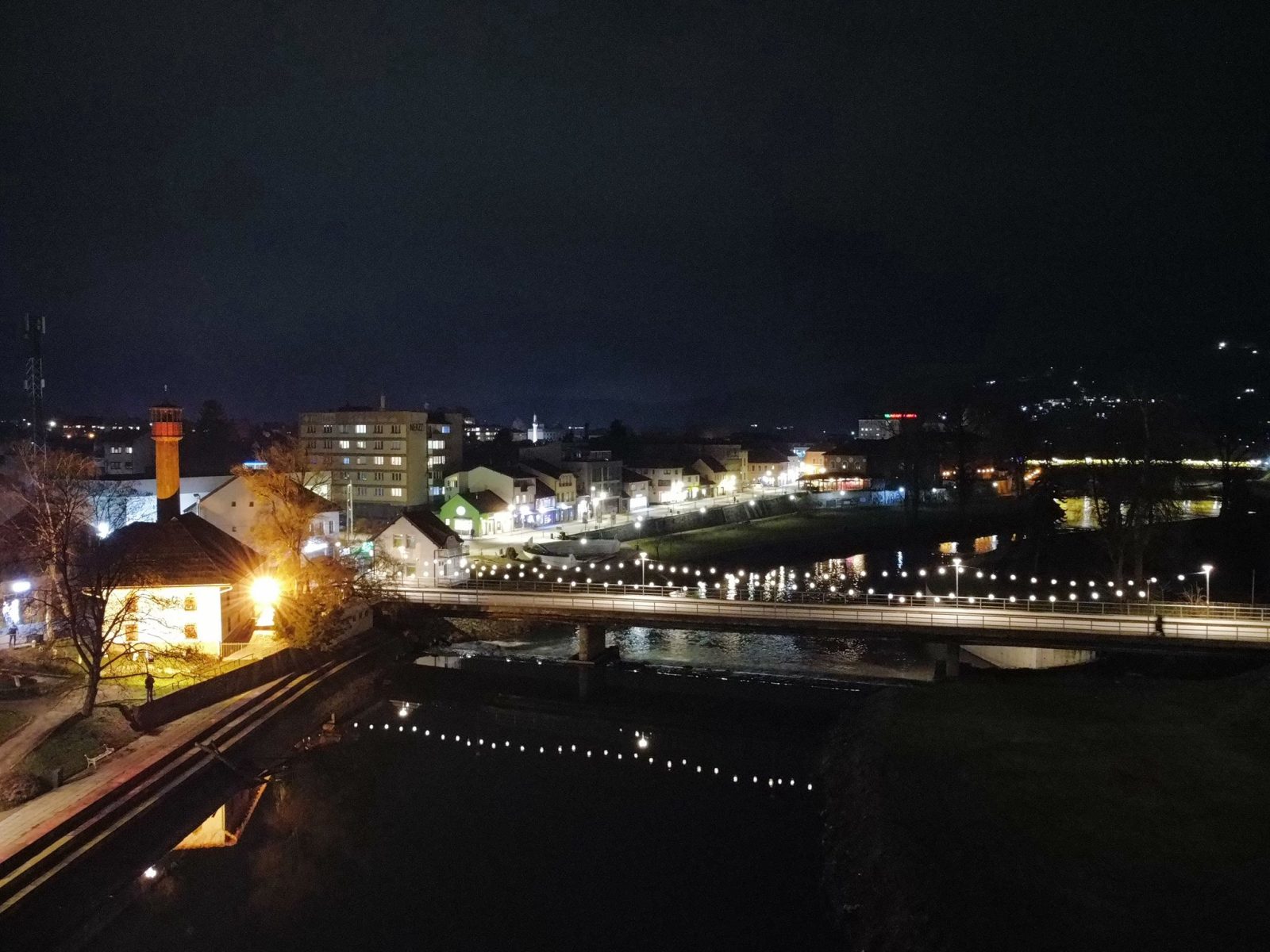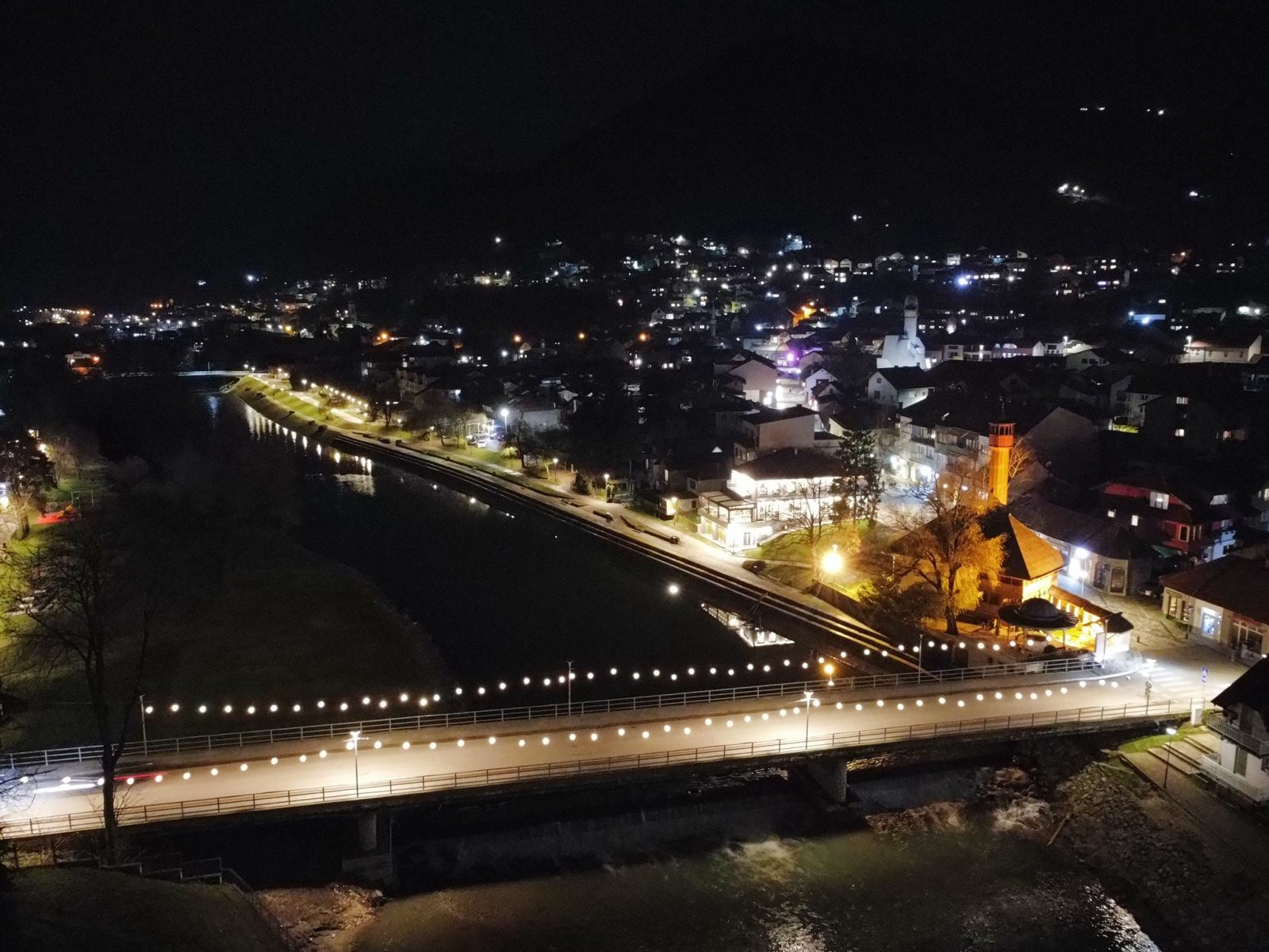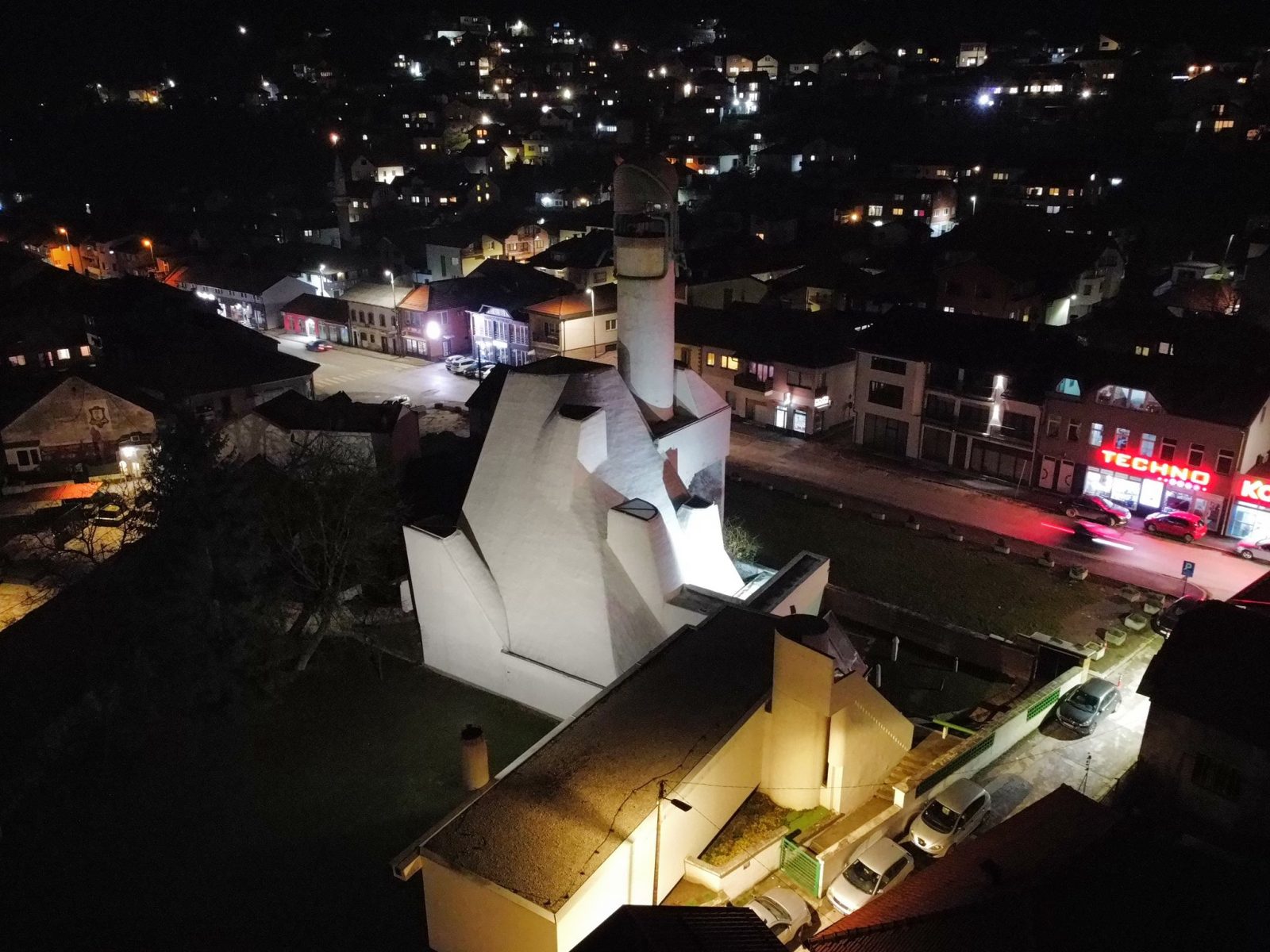Centar Visokog u noći 25. decembra 2025. godine zabilježen je kroz objektiv drona, donoseći jedinstvene kadrove praznične atmosfere grada. Osvijetljene ulice, trg i gradske tačke pružaju poseban noćni ugođaj.