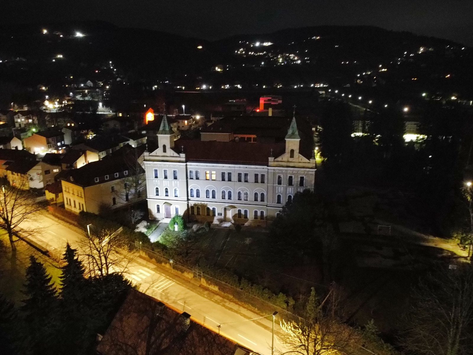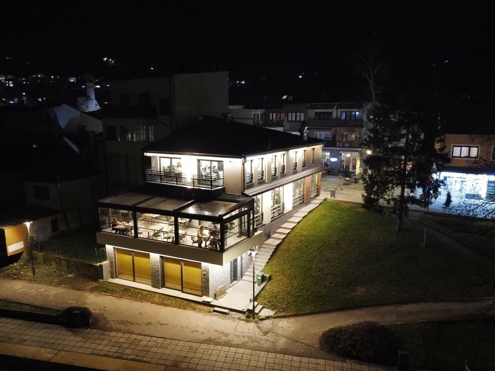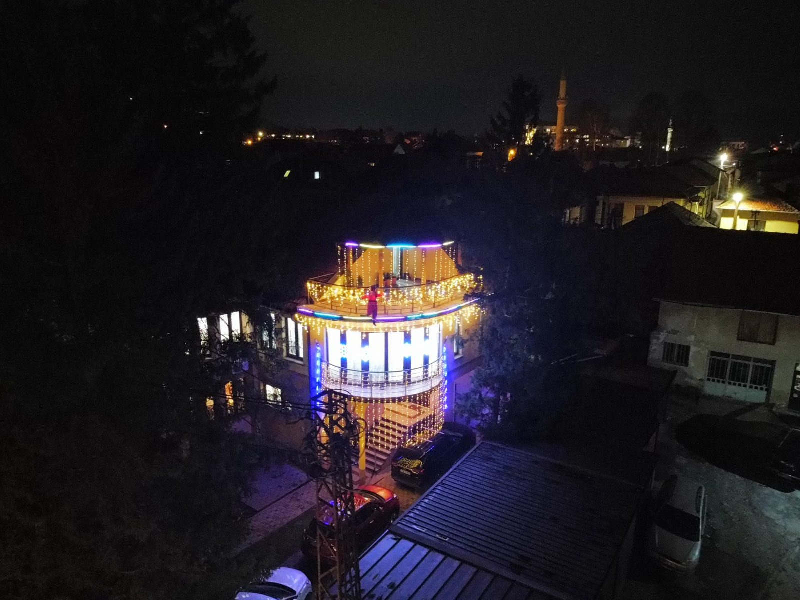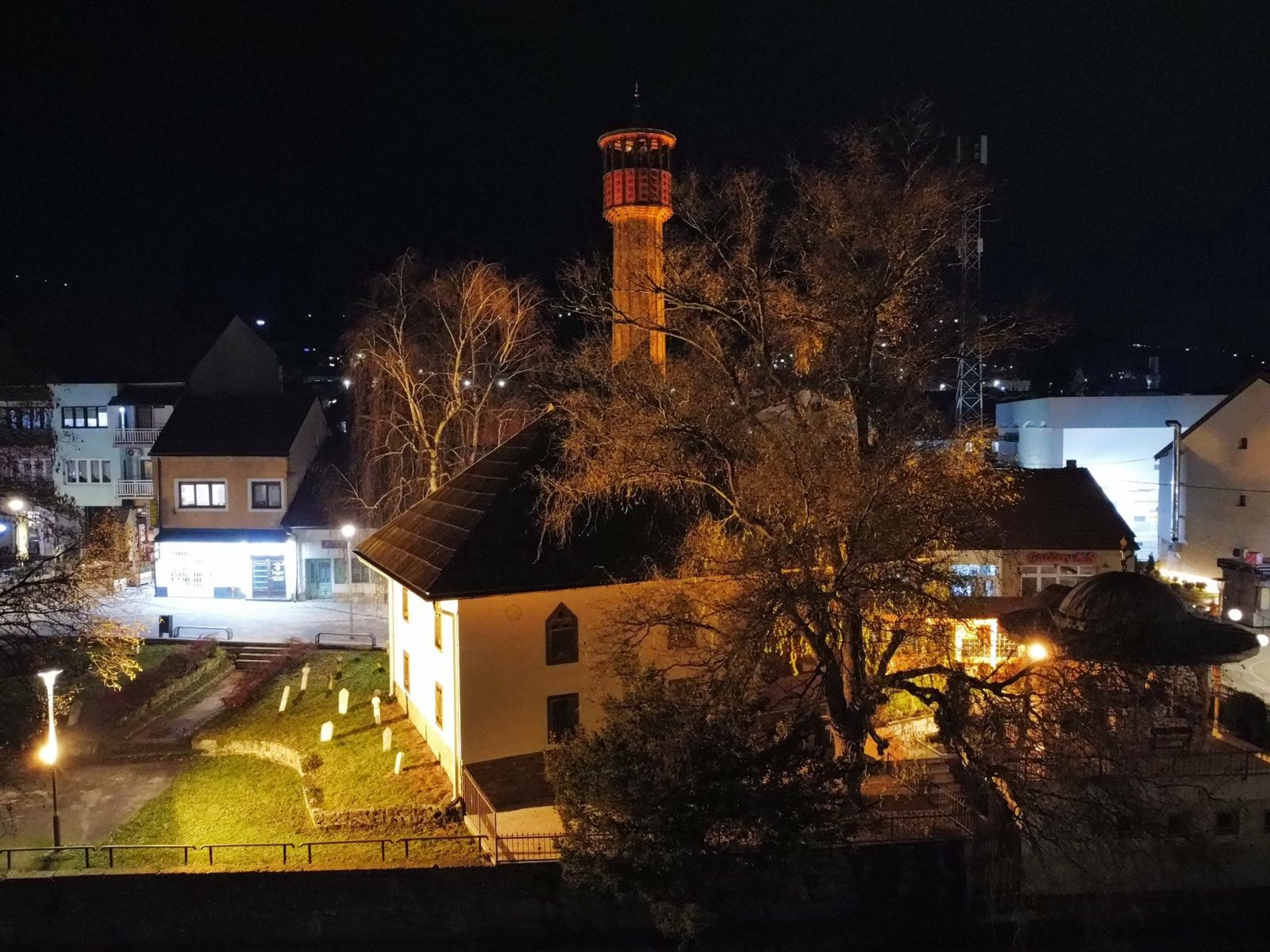 Centar Visokog u noći 25. decembra 2025. godine zabilježen je kroz objektiv drona, donoseći jedinstvene kadrove praznične atmosfere grada. Osvijetljene ulice, trg i gradske tačke pružaju poseban noćni ugođaj.