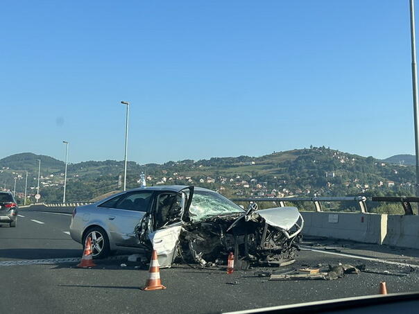 Fotografije s mjesta nesreće govore da je sudar, blizu skretanja za autoputeve prema Mostaru i Zenici, bio žestok jer je prednji dio Audija potpuno smrskan.