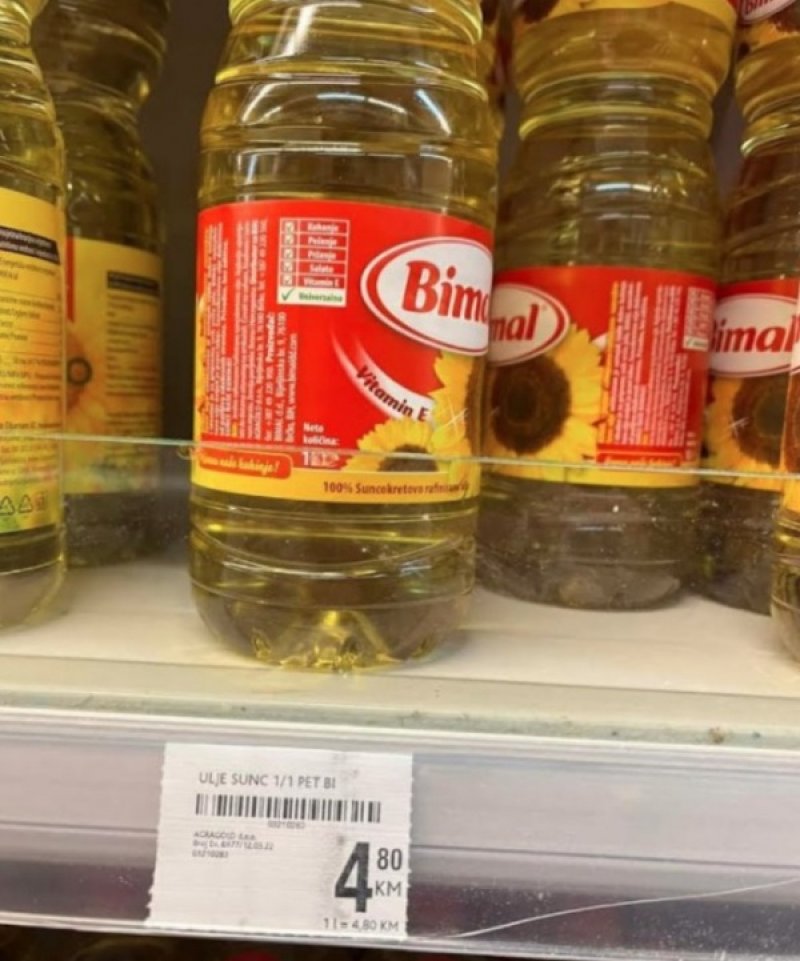 Nakon što su se juče u medijima pojavile najave da će litar ulja u BIH već od sljedeće sedmice koštati blizu 5,00 KM, crne prognoze ostvarile su se brže od očekivanog… Tako su reporteri Face TV-a već danas zabilježili u jednom sarajevskom marketu cijenu ulja od nevjerovatnih 4,80 KM.