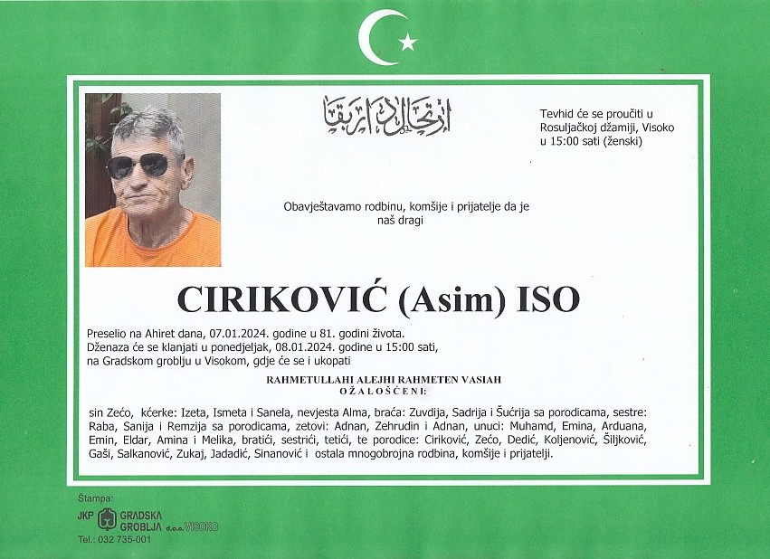 CIRIKOVIĆ (Asim) ISO 08.01.2024. godine u 15:00 sati 7. Januara 2024. CIRIKOVIĆ (Asim) ISO 08.01.2024. godine u 15:00 sati