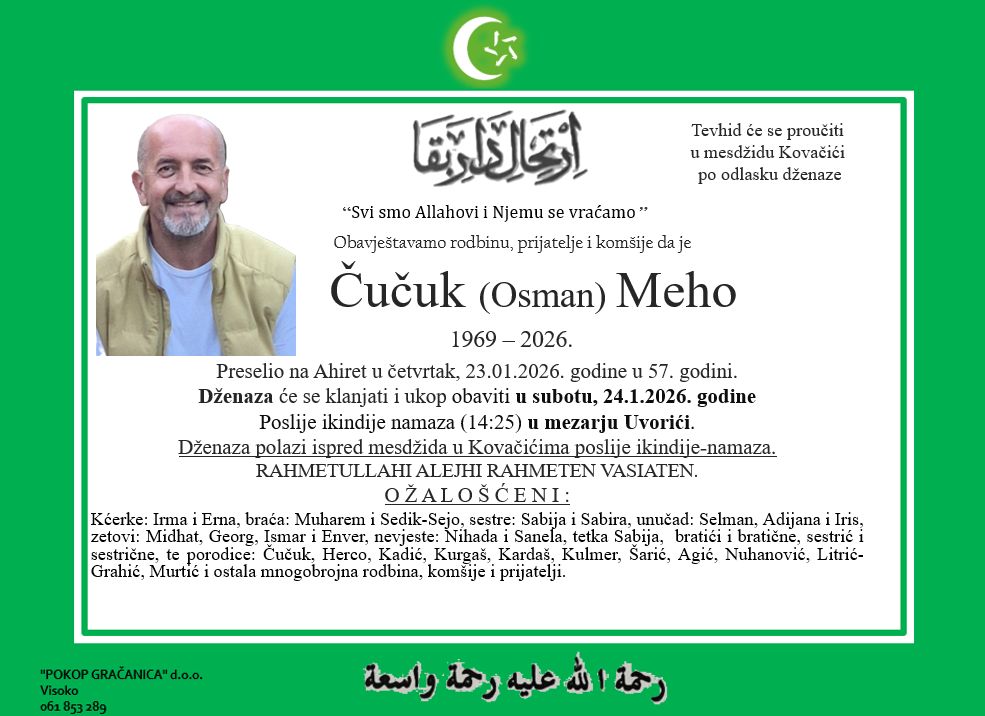 Čučuk (Osman) Meho 24.01.2026 u 14:25 sati