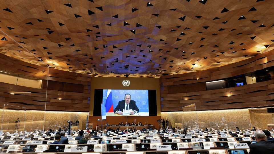 Ruski ministar trebao je lično doći u Ženevu ali je u ponedjeljak otkazao dolazak zbog sankcija protiv Rusije koje su mu onemogućile prelet zemalja EU-a.
