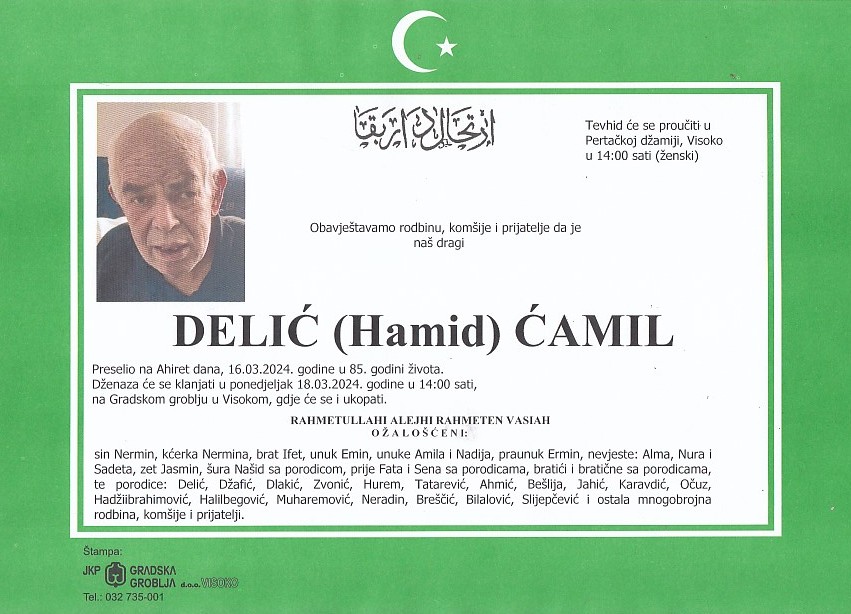DELIĆ (Hamid) ĆAMIL 18.03.2024. godine u 14:00 sati 17. Marta 2024. DELIĆ (Hamid) ĆAMIL 18.03.2024. godine u 14:00 sati