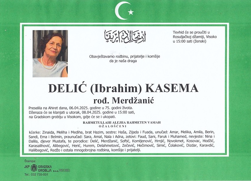 DELIĆ (Ibrahim) KASEMA 08.04.2025. godine u 15:00 sati 7. Aprila 2025. DELIĆ (Ibrahim) KASEMA 08.04.2025. godine u 15:00 sati