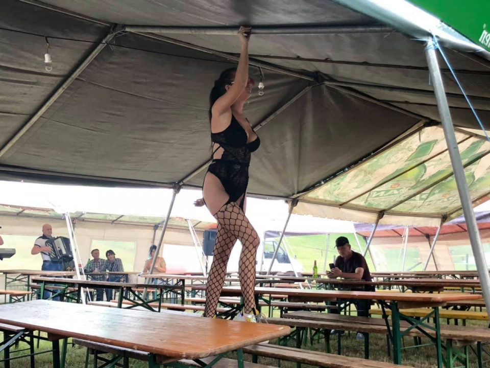 Na jednoj od fotografija koju su zabilježili reporteri, nalaze se polugola djevojka i tri dječaka koji “zure” u zanosnu plesačicu.