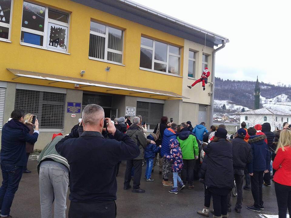 Djed Mraz se uspješno spustio sa krova centra, a nakon toga se družio sa djecom uz podjelu paketića.