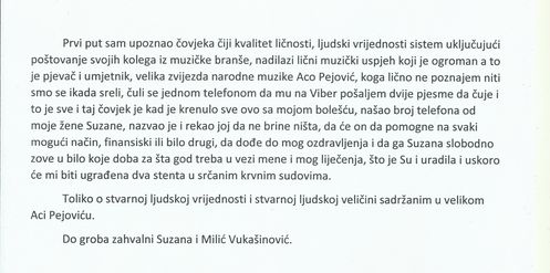 Sada se oglasio na Facebooku i otkrio da mu je finansijsku pomoć, ali i bilo koje druge vrste ponudio jedino pjevač Aco Pejović, mada se nikad nisu sreli.