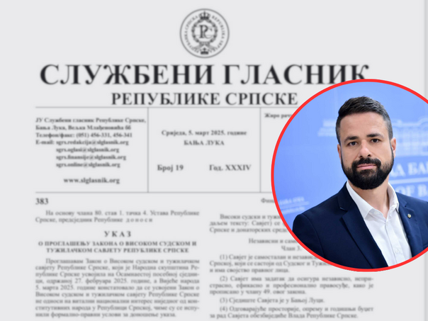 Podsjetimo, vršilac dužnosti direktora Službenog glasnika RS Miloš Lukić objavio je da je sinoć objavljen 19. broj Službenog glasnika u kojem se nalazi ukazi o proglašenju četiri zakona koje je na Posebnoj sjednici usvojila Narodna skupština RS 27. februara.