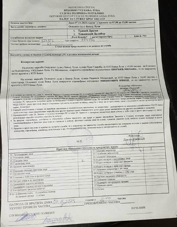 Na pitanja da li su upoznati s navedenim činjenicama i šta će tim povodom preduzeti iz Uprave Sudske policije RS, dobili smo odgovor da nam zbog „sprovođenje unutrašnjeg postupka“ nisu u mogućnosti odgovoriti na pitanja. Uz napomenu da su u „vezi navedenog događaja dva radnika privremeno udaljena s poslova iz sudske policije, a protiv tri je pokrenut disciplinski postupak“