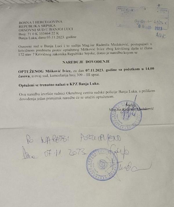 Nepropisnim djelovanjem rukovodilaca Sudske policije i odgovornih lica u pravosuđu, omogućeno je bjekstvo Ivice Miškovića osuđenog za pedofiliju iz zgrade Osnovnog suda u Banjaluci.