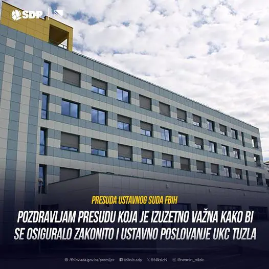 Ustavni sud Federacije BiH donio je odluku po apelaciji federalnog premijera Nermina Nikšića, koja se odnosi na privremeno imenovanje upravnog odbora Univerzitetskog kliničkog centra u Tuzli. Nikšić je pozdravio ovu presudu.