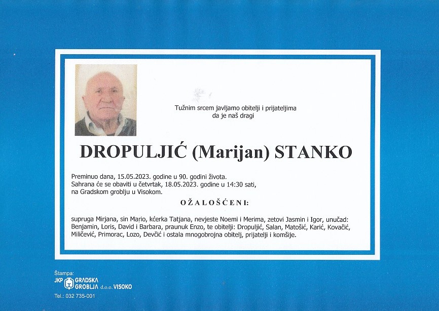 DROPULJIĆ (Marijan) STANKO 18.05.2023. godine u 14:30 sati