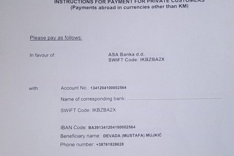 🔸 Uplate iz inostranstva: (vidjeti u priloženoj slici)