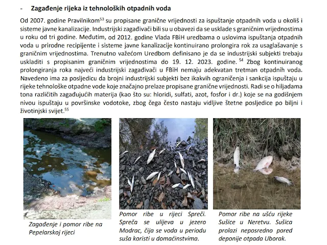 Također, istaknuli su i da od 2012. godine Vlada FBiH uredbama o uslovima ispuštanja otpadnih voda u prirodne recipijente i sisteme javne kanalizacije kontinuirano prolongira rok za usaglašavanje s graničnim vrijednostima.