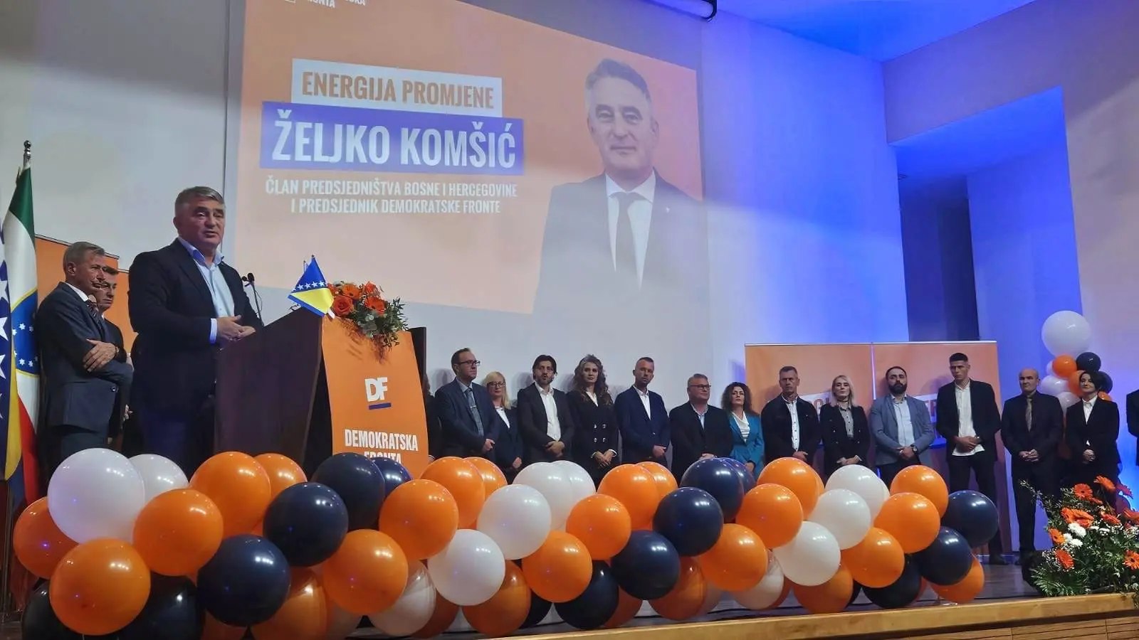 Prisutnima se obratio i Željko Komšić, član Predsjedništva Bosne i Hercegovine i predsjednik Demokratske fronte, koji je u svom govoru pozvao DF da kroz ove izbore prođe kao ozbiljna stranka, da se bavi ozbiljnim stvarima, i ne bude stranka koja se bavi mržnjom, barem ne prema onima za koje se čini da smo na istoj strani kada je riječ o budućnosti Bosne i Hercegovine.