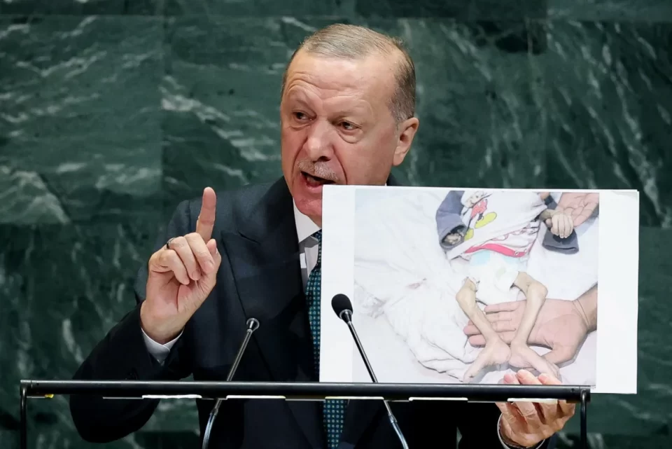 Predsjednik Turske Recep Tayyip Erdogan održao je emotivan govor na sjednici Generalne skupštine Ujedinjenih nacija u New Yorku, posvećen situaciji u Palestini. Na početku obraćanja izrazio je žaljenje što palestinski predsjednik Mahmoud Abbas nije mogao prisustvovati zasjedanju zbog američkih sankcija.