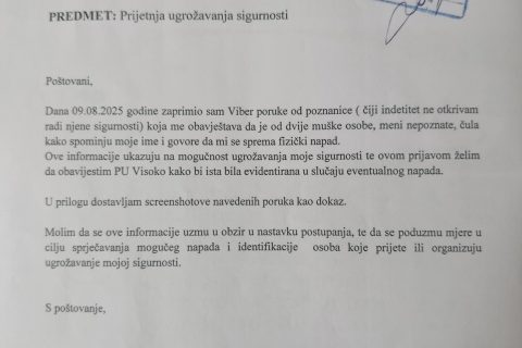 Visočanin Mirnes Fatić javno je uputio upozorenje građanima, navodeći da je 9. augusta 2025. godine dobio pouzdane informacije o tome da dvije, njemu nepoznate, muške osobe spominju njegovo ime i otvoreno govore kako mu spremaju fizički napad.