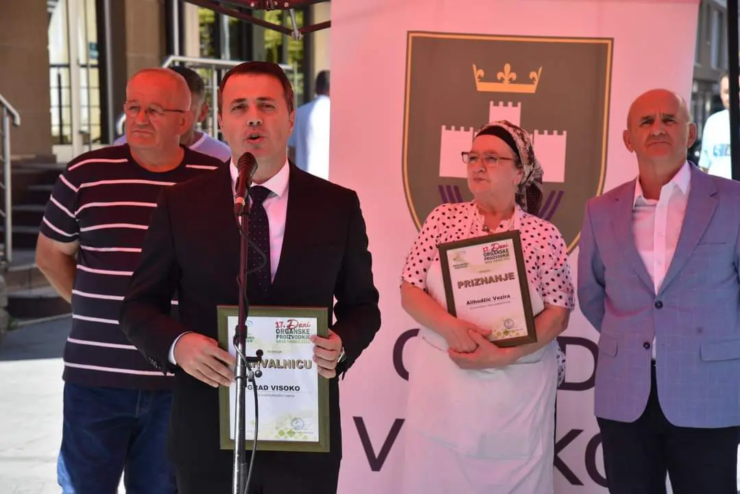 – Drago mi je da se prepoznaje rad, trud i zalaganje Gradske uprave Visoko. Prije dvije i po godine podrška poljoprivrednih proizvođačima je iznosila 60.000 KM, a danas je ta podrška u iznosu od preko 600.000 KM i ovime pokazujemo trajno opredjeljenje za pružanje podrške ovim ljudima. Zelena polja su osnov našeg zdravog života, iz zelenih polja dolazi zdrava hrana koju konzumiramo, a s druge strane i izvozimo – prodajemo izvan Visokog. Od te proizvodnje živi veliki broj naših građana, a ja im se svima, koji se bave ovom vrstom proizvodnje, zahvaljujem, jer to nije lagan izvor zarade. Ovi ljudi pokazuju da se od poljoprivredne proizvodnje može živjeti i preživjeti, da se mogu izdržavati porodice i školovati djeca. Zato sam zahvalan svim tim ljudima koji nam svojim doprinosom omogućavaju da imamo zdravu hranu. Iz tog razloga je i Grad Visoko promijenio politiku podrške, zato smo povećali podršku i to ćemo raditi i u budućnosti, jer bez podrške državnih institucija ne može se opstati, a nama je cilj da naši poljoprivredni proizvođači opstanu, razvijaju se i da ih bude što veći broj. – poručio je gradonačelnik Ganić, te pozvao i građane da kupovinom organskih proizvoda dođu do kvalitetnog proizvoda, a ujedno i podrže poljoprivredne proizvođače.