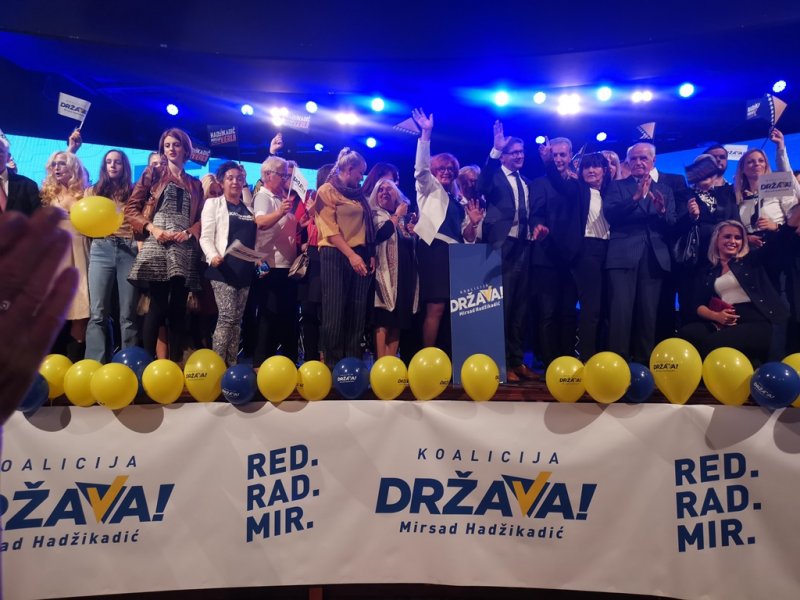 Koalicija Država i kandidat Platforme za progres i ove koalicije za Predsjedništvo BiH, prof. dr. Mirsad Hadžikadić, otvorili su kampanju u kultnom Domu mladih u Sarajevu. To je svojevrsna poruka da je ova politička priča okrenuta mladim, da žele zaustaviti trend odlaska naše populacije, te da se da šansa novim ljudima i idejama. Predstavljen je program ”RED. RAD. MIR.”, a u zabavom dijelu programa uživo su nastupali i domaći muzičari.