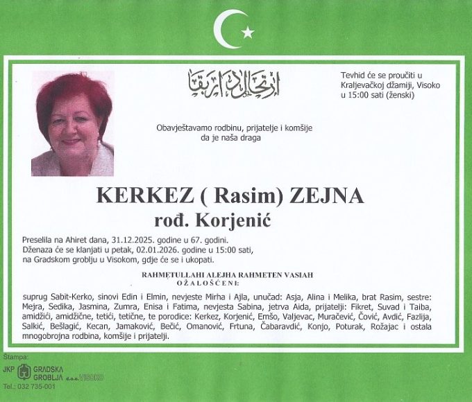 KERKEZ (Rasim) ZEJNA 02.01.2026. u 15:00 sati