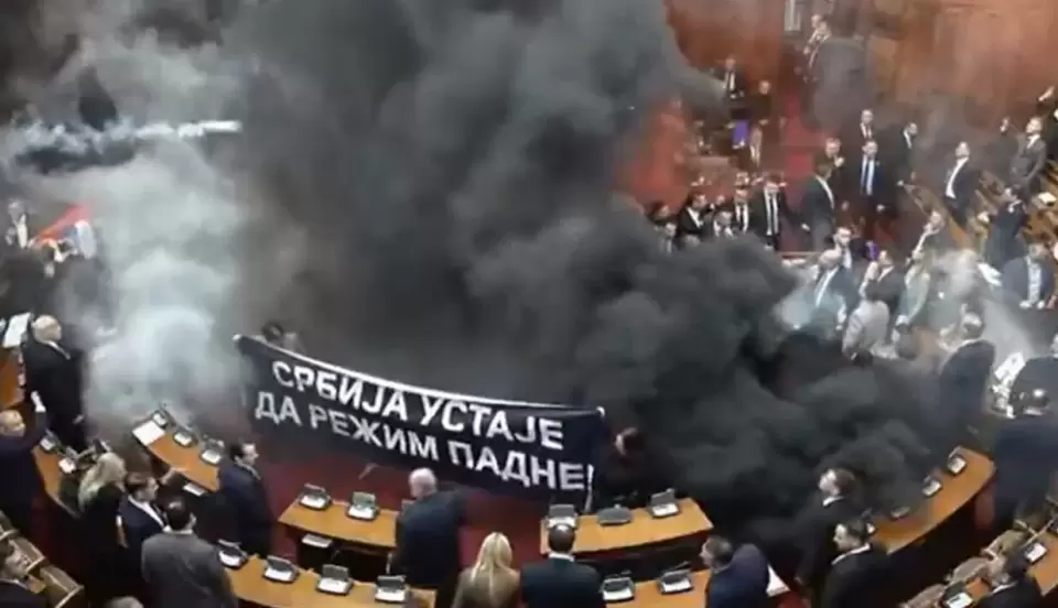 U Skupštini Srbije je došlo do fizičkog obračuna, a potom su aktivirane i dimne bombe.