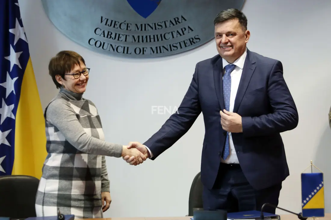 Ministar finansija i trezora Bosne i Hercegovine Zoran Tegeltija i predsjednica EBRD-a Odil Rene-Baso (Odile Renaud-Basso) potpisali su juče ugovor o zajmu između Bosne i Hercegovine i Evropske banke za obnovu i razvoj za Projekt izgradnje tramvajske pruge Ilidža – Hrasnica vrijedan 25 miliona eura.
