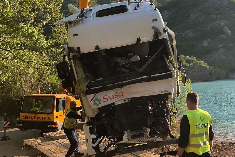 Riječ je o kamionu kompanije Suša Commerce iz Visokog. Beživotno tijelo vozača izvučeno je sinoć iz jezera.