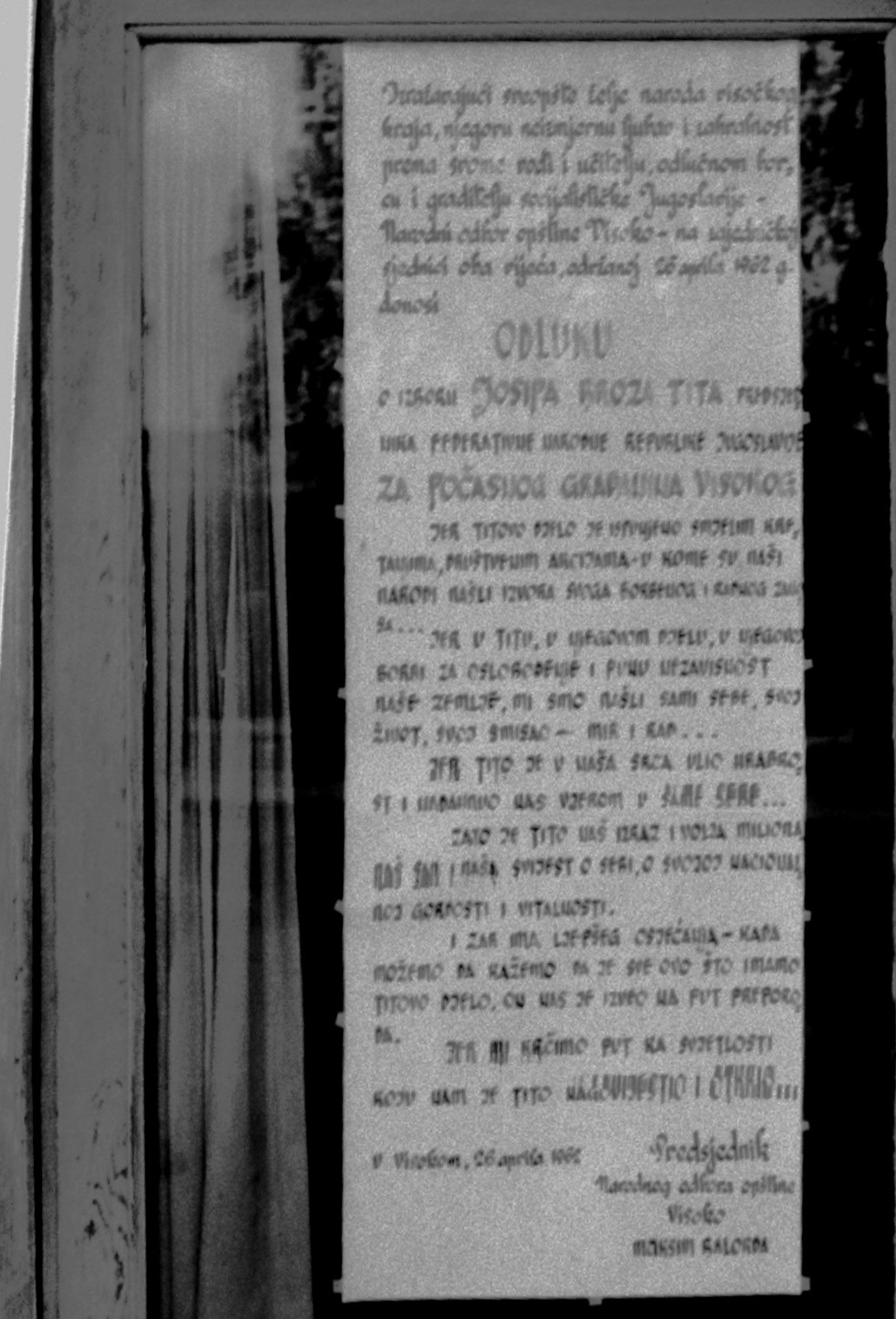 Znam da je Srđan Praljak Šjor izabran za počasnog građanina Visokog augusta 2007. (i kasnije, još nekoliko njih). Ali nisam znao da je Josip Broz Tito bio počasni građanin Visokog od aprila 1962. godine.
