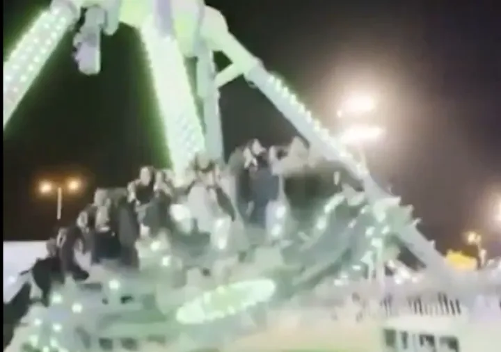Posjetitelji su snimili trenutak nesreće, u kojoj se središnji stup vrtuljka koji se mogao okretati za 360 stepeni, prepolovio i platforma s ljudima se srušila na tlo.